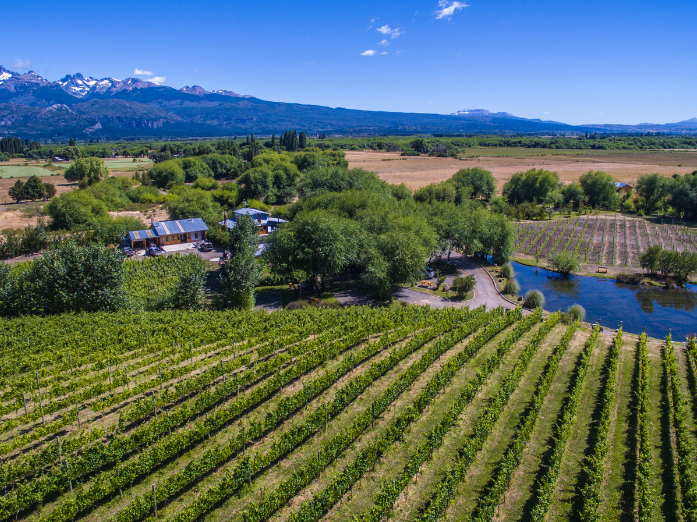 Viñas del Nant y Fall, primer viñedo austral del valle de Trevelin, Argentina.